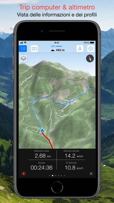 Immagina che esista un'applicazione GPS per tutte le attività all'aperto: perfetta per la bicicletta, le escursioni, lo sci e l'equitazione. Per il geocoaching e per la pianificazione, la registrazione e la condivisione dei percorsi. Immagina ora che questa App non rappresenti montagne e valli in due dimensioni ma TRIDIMENSIONALMENTE, segnandovi sopra l'itinerario che stai percorrendo. Un altimetro di precisione (!) mostra l'altitudine attuale a cui ti trovi. Tutto questo è Maps 3D. Com'è possibile? Per la prima volta abbiamo combinato le scansioni NASA del profilo altitudinale della terra con la cartografia Outdoor OSM. Tutte le cartine del mondo sono per te gratis. Con tutte le strade, sentieri, pendii, piste di sci e di fondo di OSM. Con funzione segui e registra percorso, funzione cerca, altimetro e numerose altre opzioni. Semplice importazione ed esportazione di percorsi GPX. La cosa più importante: con Maps 3D ti diverti! Guarda le istantanee! Provalo! DICONO DI NOI *** TOP 1 *** App Navigazione in più di 75 paesi “Le funzioni sono utili, l'elaborazione delle carte geografiche 3D è impressionante.” Macwelt.de – Voto: 1,8 “Questa App lascerà cadere ai vostri piedi un mondo 3D!” Bild.de Digital – Voto: 4/5 CHIP.de – Voto: 5/5 FUNZIONI PRINCIPALI +++ PRECARICA LE CARTE GEOGRAFICHE via WiFi o 4G. Dopodiché non sarà più necessaria alcuna connessione +++ REGISTRA I PERCORSI via GPS – I dati riguardanti coordinate e altitudine esatta vengono salvati +++ PIANIFICA VIAGGI – direttamente nella visualizzazione mappa 3D usando il calcolatore di itinerari +++ ANALIZZA I TOUR – Tutte le informazioni sui percorsi con profili di altitudine e velocità +++ COMPUTER PER BICICLETTA – Tutti i dati sempre sott'occhio sul tachimetro +++ CERCA LUOGHI – Località, strade, cime, laghi e altri punti d'interesse naturalistico sono disponibili in modalità offline DETTAGLI VISUALIZZAZIONE MAPPA 3D: – Carte ortografiche reali ed esatte sulla base di scansioni NASA della superficie terrestre – Vedute in 3D realistiche da ogni prospettiva – Isoipse sulla cartina topografica – Marcatura costante della propria posizione sulla cartina – Maggiore sicurezza grazie alla migliore interpretazione del terreno e all'orientamento più semplice PIANIFICAZIONE TOUR E PERCORSI: – Caricamento facile dei tour via Dropbox, iTunes, e-mail, inserimento o URL – Visualizzazione del percorso rimanente e dell'altitudine – Visualizzazione dei tratti già percorsi, velocità media ed attuale e dell'altitudine sul livello del mare – Deviazioni dal percorso sono immediatamente riconoscibili – Esportazione dei percorsi facile via e-mail – Calcolo preciso dei tempi di salita e di discesa nonché dell'aumento della velocità di salita sulla base di modelli in 3D WAYPOINTS: – Segnalazione waypoint – Ricerca indirizzi online – Gli amanti del geocoaching possono anche usare file waypoint PUNTI D'INTERESSE - POIs (cartine offline): – Nomi di luoghi e vie – Segnalazione di cime, laghi, spiagge, boschi, ghiacciai, caverne CARTINE: – Cartine OSM gratis con percorsi in bicicletta e sentieri, sentieri a cavallo, piste di fondo e di discesa – Tre parametri diversi – Cartine geografiche di tutto il mondo AVVISI La registrazione GPS di fondo può far diminuire notevolmente la durata della batteria * * * * * Se trovi Maps 3D interessante, lascia un commento positivo su iTunes! Il team movingworld continua a sviluppare Maps 3D. Hai consigli su come migliorarlo? Mandaci un'e-mail a support@movingworld.de. Cercheremo di rispondere entro 24 ore dall'invio! Ti ringraziamo per l'utilizzo di Maps 3D!